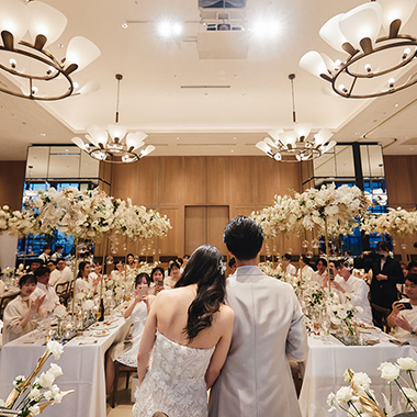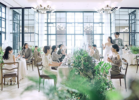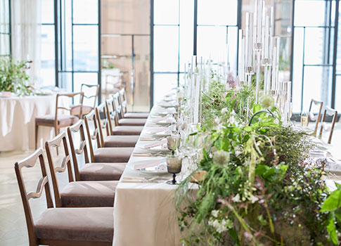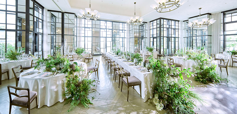 花や葉をモチーフにした照明や、植物をイメージしたカーペットのデザインや色使いなど都会と自然なナチュラルな雰囲気を同時に感じることができる空間です。(収容人数:50〜90 名)